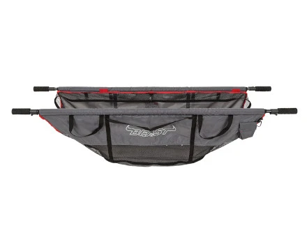 This is the most versatile retainer sling available today. With extendable EVA arms, it can be used in boats of varying widths to support your catch while unhooking and taking pictures. Features reinforced weighing straps and secure metal rings for ease of attaching scales. If you want to let the fish recover, you can detach the base of the sling to further increase its depth so it can be attached along the side of the boat or along the shore. Comes with an attachment cord. Made of soft mesh and comes with a bag to hold bad odors.